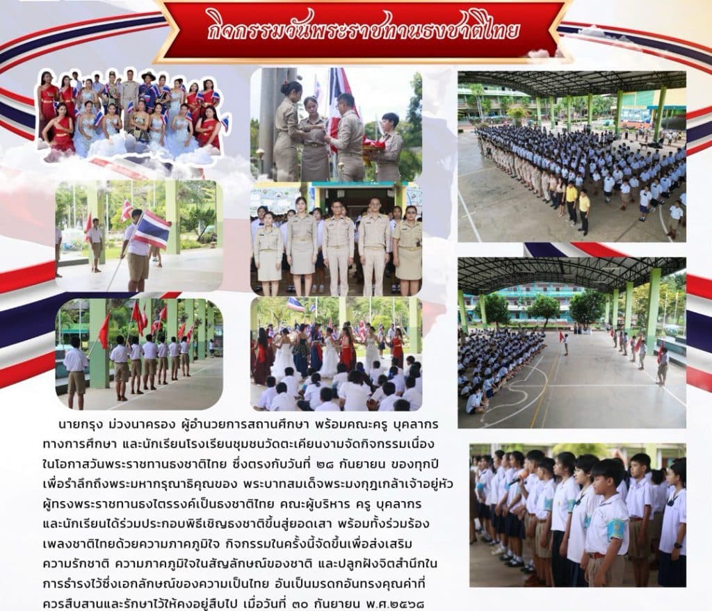 นายกรุง ม่วงนาครอง ผู้อำนวยการสถานศึกษา พร้อมคณะครู บุคลากรทางการศึกษา และนักเรียนโรงเรียนชุมชนวัดตะเคียนงามจัดกิจกรรมเนื่องในโอกาสวันพระราชทานธงชาติไทย ซึ่งตรงกับวันที่ 28 กันยายน ของทุกปี เพื่อรำลึกถึงพระมหากรุณาธิคุณของ พระบาทสมเด็จพระมงกุฎเกล้าเจ้าอยู่หัว ผู้ทรงพระราชทานธงไตรรงค์เป็นธงชาติไทย คณะผู้บริหาร ครู บุคลากร และนักเรียนได้ร่วมประกอบพิธีเชิญธงชาติขึ้นสู่ยอดเสา พร้อมทั้งร่วมร้อง เพลงชาติไทยด้วยความภาคภูมิใจ กิจกรรมในครั้งนี้จัดขึ้นเพื่อส่งเสริม ความรักชาติ ความภาคภูมิใจในสัญลักษณ์ของชาติ และปลูกฝังจิตสำนึกใน การธำรงไว้ซึ่งเอกลักษณ์ของความเป็นไทย อันเป็นมรดกอันทรงคุณค่าที่ ควรสืบสานและรักษาไว้ให้คงอยู่สืบไป เมื่อวันที่ 30 กันยายน พ.ศ. 2568