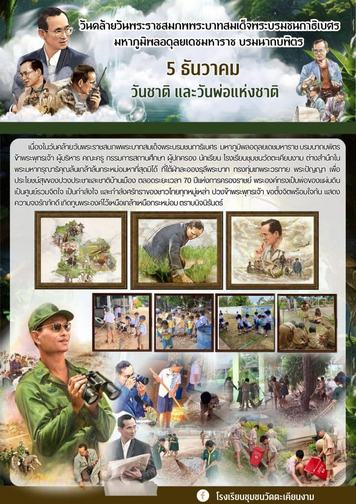 เนื่องในวันคล้ายวันพระราชสมภพพระบาทสมเด็จพระบรมชนกาธิเบศร มหาภูมิพลอดุลยเดชมหาราช บรมนาถบพิตร ข้าพระพุทธเจ้า ผู้บริหาร คณะครู กรรมการสถานศึกษา ผู้ปกครอง นักเรียน โรงเรียนชุมชนวัดตะเคียนงาม ต่างสำนึกในพระมหากรุณาธิคุณล้นเกล้าล้นกระหม่อมหาที่สุดมิได้ ที่ใต้ฝ่าละอองธุลีพระบาท ทรงทุ่มเทพระวรกาย พระปัญญา เพื่อประโยชน์สุขของปวงประชาและชาติบ้านเมือง ตลอดระยะเวลา 70 ปีแห่งการครองราชย์ พระองค์ทรงเป็นพ่อของแผ่นดิน เป็นศูนย์รวมจิตใจ เป็นกำลังใจ และกำลังศรัทธาของชาวไทยทุกหมู่เหล่า ปวงข้าพระพุทธเจ้า ขอตั้งจิตพร้อมใจกัน แสดงความจงรักภักดี เทิดทูนพระองค์ไว้เหนือเกล้าเหนือกระหม่อม ตราบนิจนิรันดร์